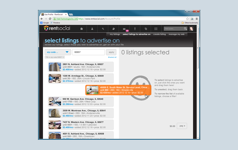 In an effort to further monetize a social ILS (Internet Listing Service), I was handed a large set of evolving requirements in the late fall of 2012 and asked to turn them into a feature that would facilitate an array of new use-cases. All of the stakeholders agreed the solution I designed was an elegant, intuitive, and highly usable addition that integrated with the existing experience seamlessly. The front-end developers especially appreciated the exquisitely-detailed and highly visual wireframe documentation and credited these with saving them iteration cycles. Screenshots of the feature appear on this page.