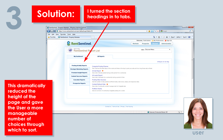 Some UX is hard. Some is easy. The improvements I made in 2011 to this page were the latter. Sometimes the needs and preferences of the User must be divined through carefully-crafted usability tests. Other times it's so obvious you need rely on fundamentals alone. This was the latter. I was addressing a good example of what I call "Projected Acclimation," in which the creators of an application have acclimated to its shortcomings and project this onto their Users. If the railing on the front porch of your home is wobbly, you learn not to use it or fall in to the yard. But you become so habituated to not using it, you forget to mention it to visitors.