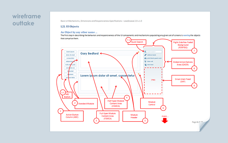 In the spring of 2013 I was tapped to unify the experience of three discrete legacy applications in to one SaaS enterprise suite. The initial work of bringing all three under the same roof of an entirely new "UX Sensibility" was completed that summer and it was now time to drill in to each product and express this new sensibility in the day-to-day workflow of each app. I focused on self-evidence and consistency above all else. There were hundreds of data points for the User to track and turnover rates in our User-base were high. So the last thing I wanted was for our Users to spend one second more than they needed to familiarizing themselves with the nuances of this new product and its paradigms. Large labeling, traditional screen mechanisms, like dropdowns, and intuitive flow became the order of the day and I believe this comes across in the wireframe.