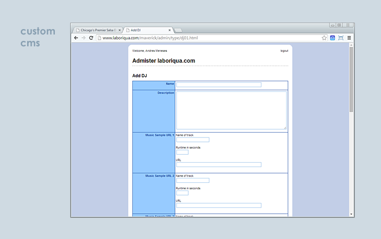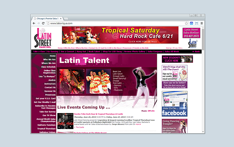 In the late summer of 2007, a Developer with whom I had partnered on a number of freelance engagements and I were approached by a locally prominent Chicago-area dance school / agency to design a B2C Portal for their clients and students. They additionally requested a means of updating it themselves when it was complete, so we built them a custom CMS they could use to keep the site current with fresh content. I designed the entire experience of both the portal and the CMS, directing all Information Architecture, wireframing all crucial workflows, producing all graphics, and coding the entire front-end for hand-off to development. We delivered the Product in January of 2008 and the clients were so pleased with it, it's still in use as of this description, nearly 7 years later.