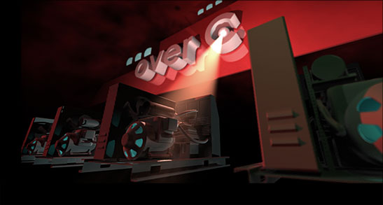 | This image required several hours of modeling work to create the machinery featured in the foreground. The client enthusiastically embraced this direction, but good-humoredly requested a slightly less dramatic array of compressors that looked less like a "hyperdrive from Star Wars." Thus the name. To view the final image they settled on for their login/splash page, click here. |