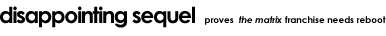 It is almost as if the fearsome “agents” from the Matrix paid a visit to the Wachowski brothers and "suggested" they make a less poignant follow-up. Who will the agents come for ne …?