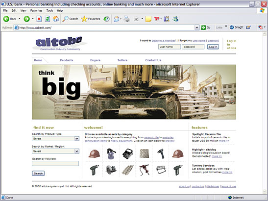 | Developed for an Indian firm with a focus on construction B2B. Simple, clear, elegant; proves once again that rules of design are immutable, whether employed on the Web or in print. Note original 3D logo in upper left corner. |